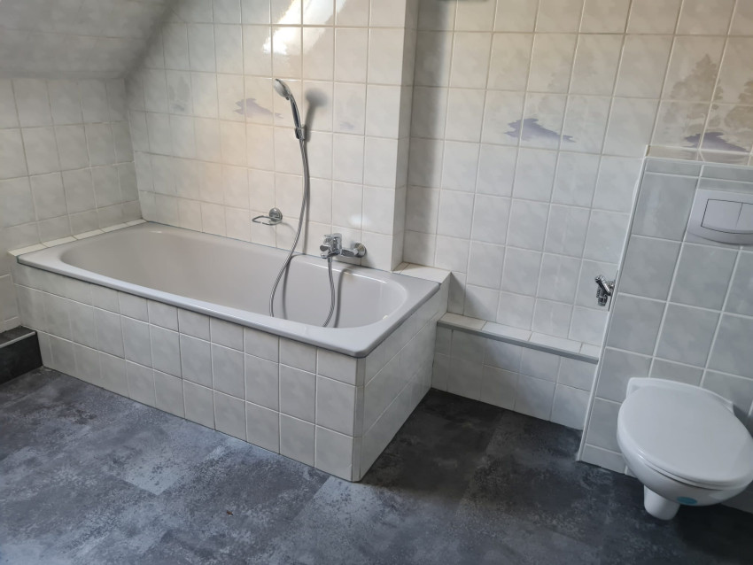 Obergeschoß: 2 Zimmer, Küche, Bad und Flur + Balkon